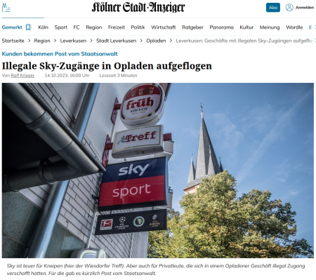 Anwaltskanzlei Lenné im KStA: Ermittlungen gegen Käufer illegaler Sky-Zugänge