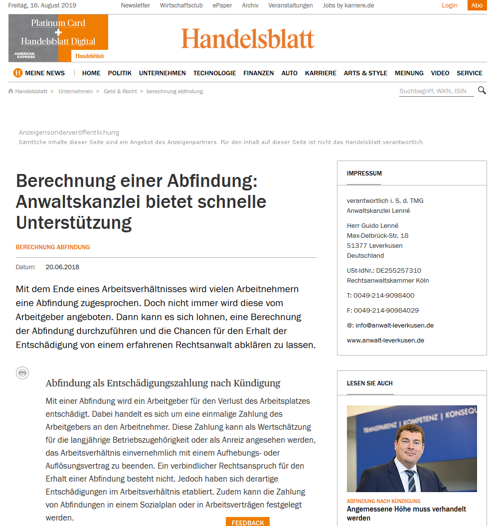 Handelsblatt: Berechnung der Abfindung